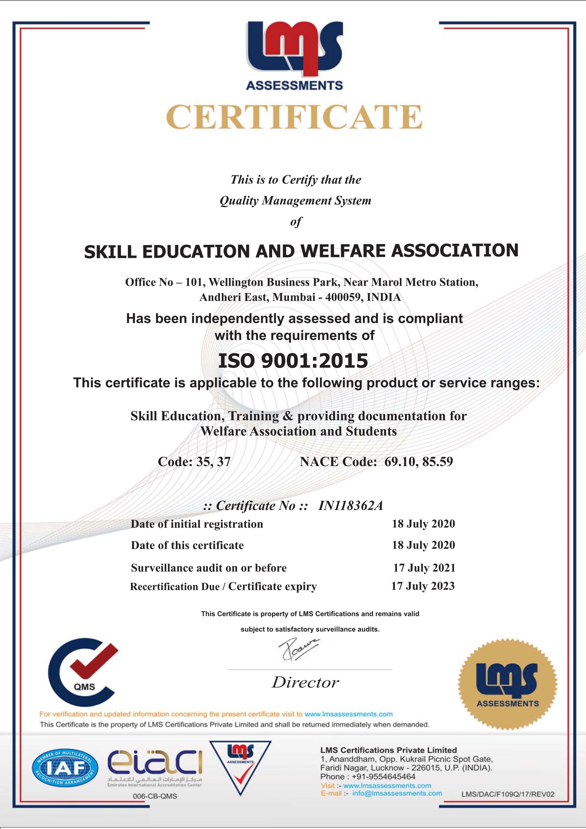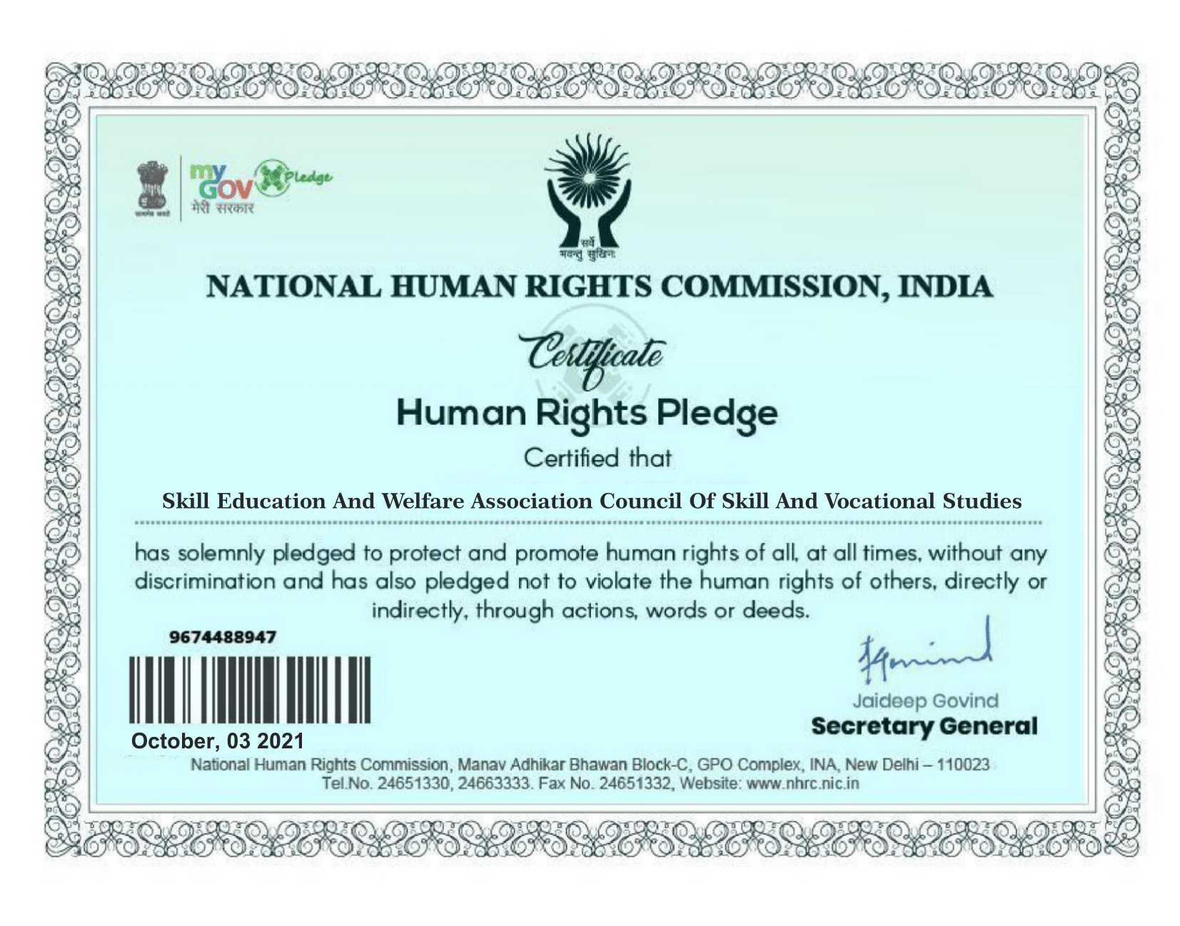 SKILL EDUCATION AND WELFARE ASSOCIATION (SEWA) Council of Skill & Vocational Studies Council of Skill And Vocational Studies